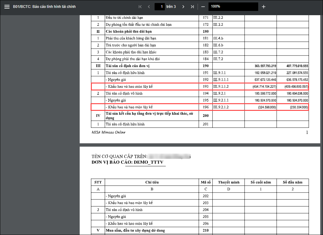 5. Vấn đề 3: Tại sao chỉ tiêu Khấu hao và hao mòn lũy kế (Mã số 193, 196) lại bị âm?