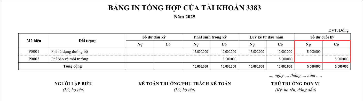 Chỉ tiêu này lấy số dư Có tài khoản 3383 chi tiết theo từng loại phí, lệ phí, loại phí nào dư có sẽ lên chỉ tiêu này.
