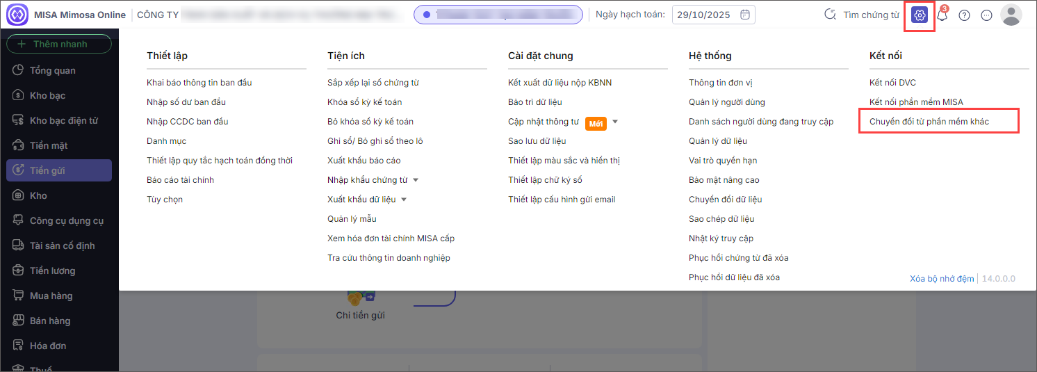 Chức năng này giúp bạn thực hiện chuyển toàn bộ dữ liệu từ phần mềm kế toán DTSoft sang Mimosa Online để sử dụng tiếp mà không phải nhập lại thủ công.