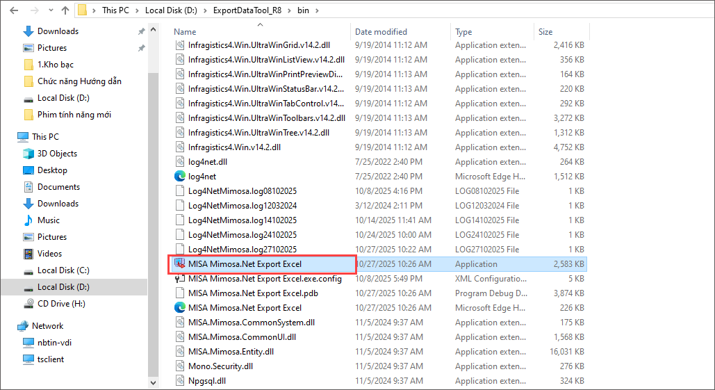 Bước 4: Mở đến thư mục Bin của bộ cài. Nhấn đúp chuột tại file MISA Mimosa.NET Export Excel.