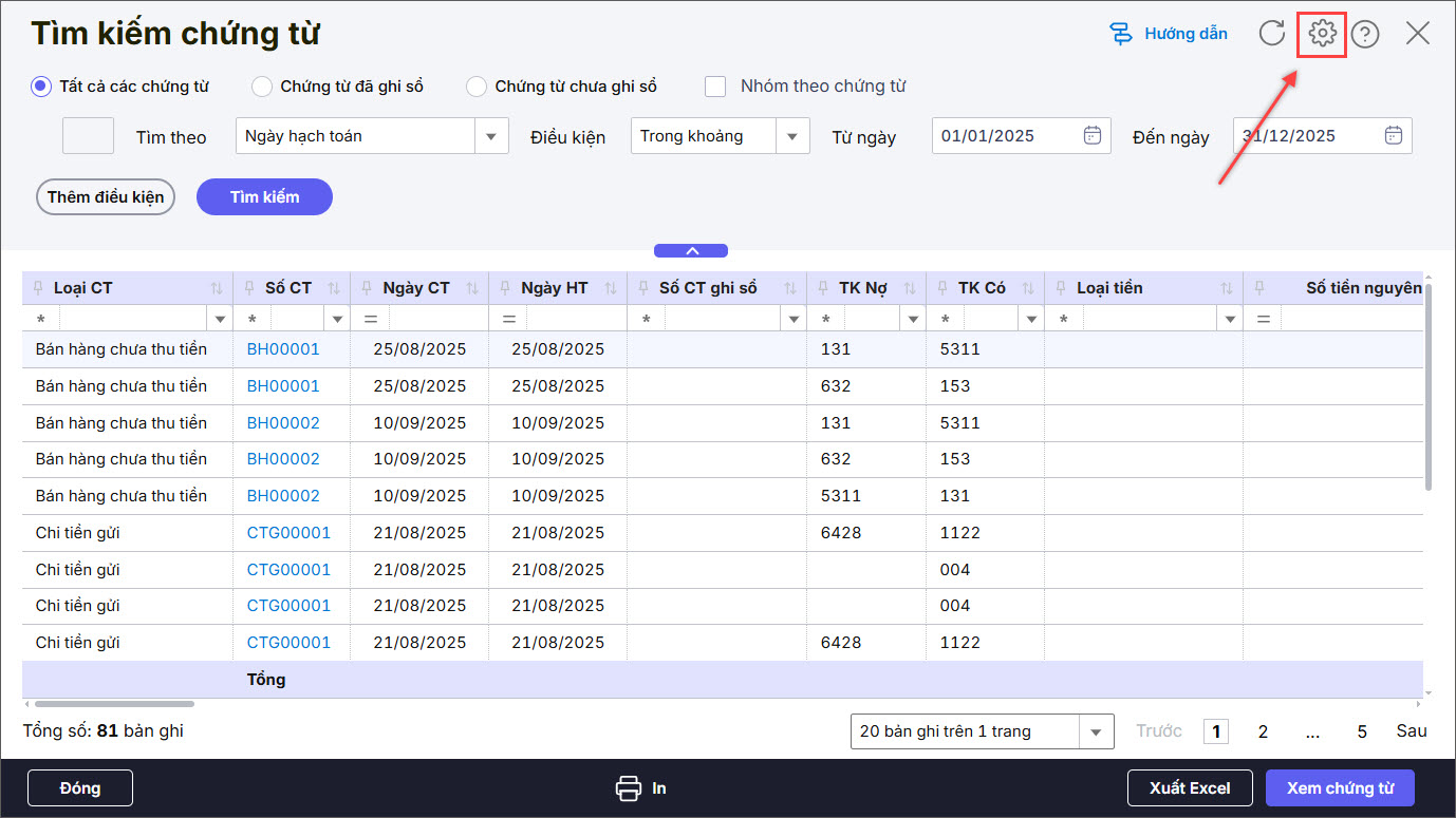 >>> Xem hướng dẫn tìm kiếm chứng từ tại đây