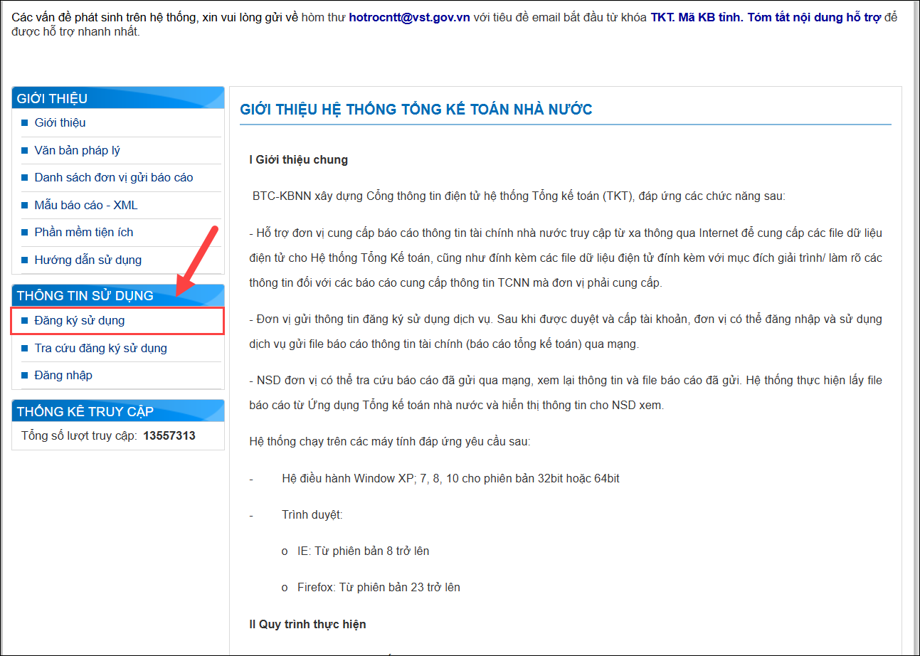 4. Hướng dẫn đăng ký sử dụng hệ thống Tổng kế toán kho bạc nhà nước (trang https://bctcnn.vst.mof.gov.vn/)