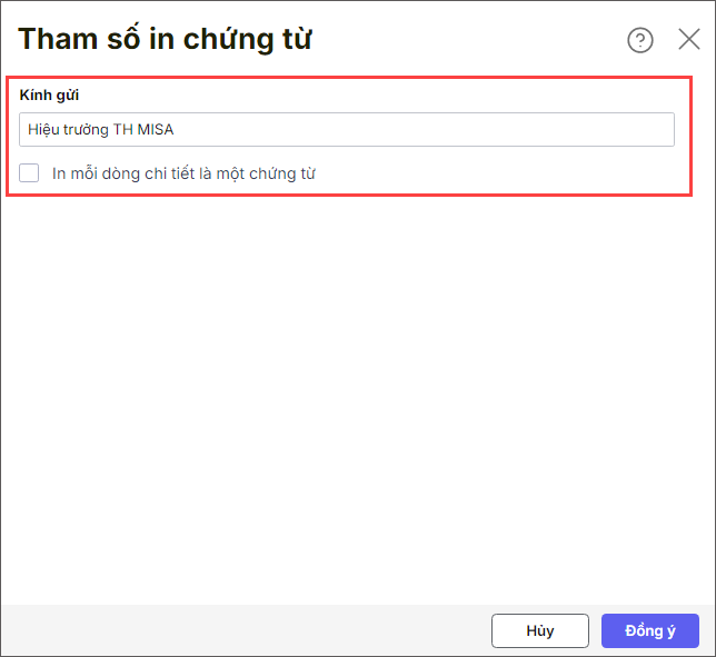 - Tích chọn In mỗi dòng chi tiết là một chứng từ nếu cần.