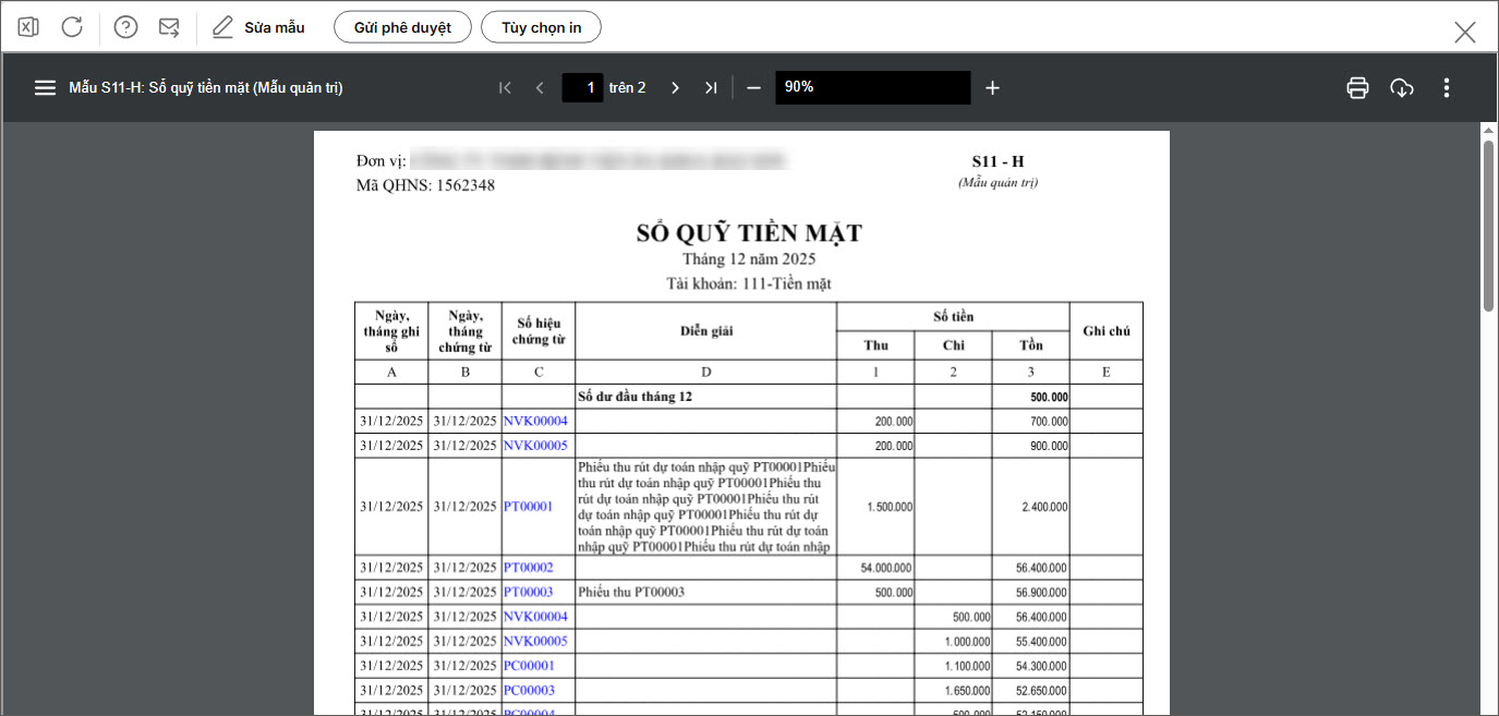 Bài viết này nhằm hướng dẫn bạn in S11-H: Sổ quỹ tiền mặt hàng loạt, mỗi tài khoản chi tiết của TK 111 thành 1 báo cáo để tiết kiệm thời gian.