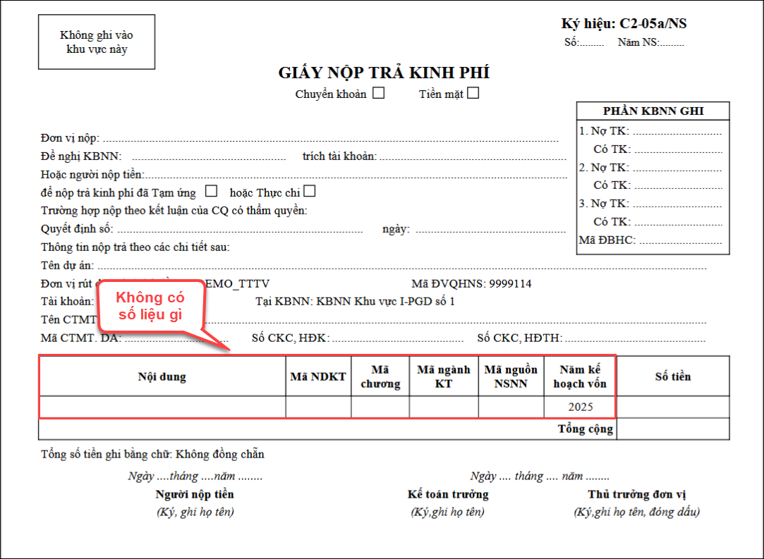 Bài viết nhằm hướng dẫn cách xử lý khi in Giấy nộp trả kinh phí (C2-05a/NS) trên phần mềm mà chứng từ in ra không có số liệu.