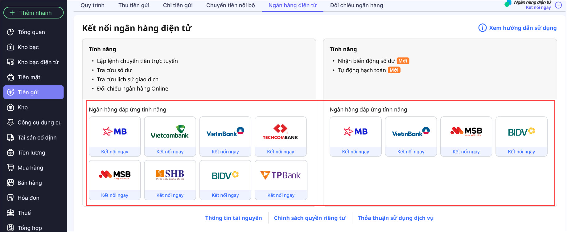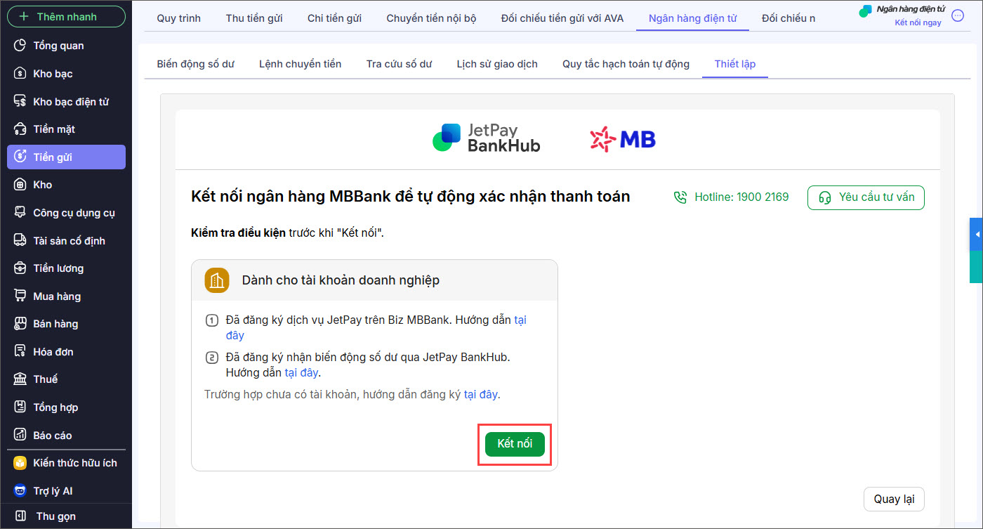 2.2. Kết nối với dịch vụ Ngân hàng điện tử