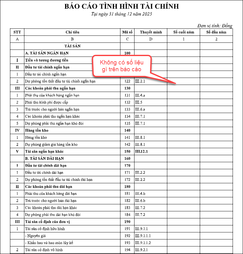 Khi in Báo cáo tài chính không có số liệu (báo cáo trắng) thì phải làm thế nào?