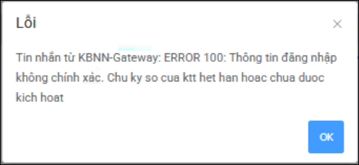 “ERROR 100: Thông tin đăng nhập không chính xác, Chu ky so cua ktt het han hoac chua duoc kich hoat”