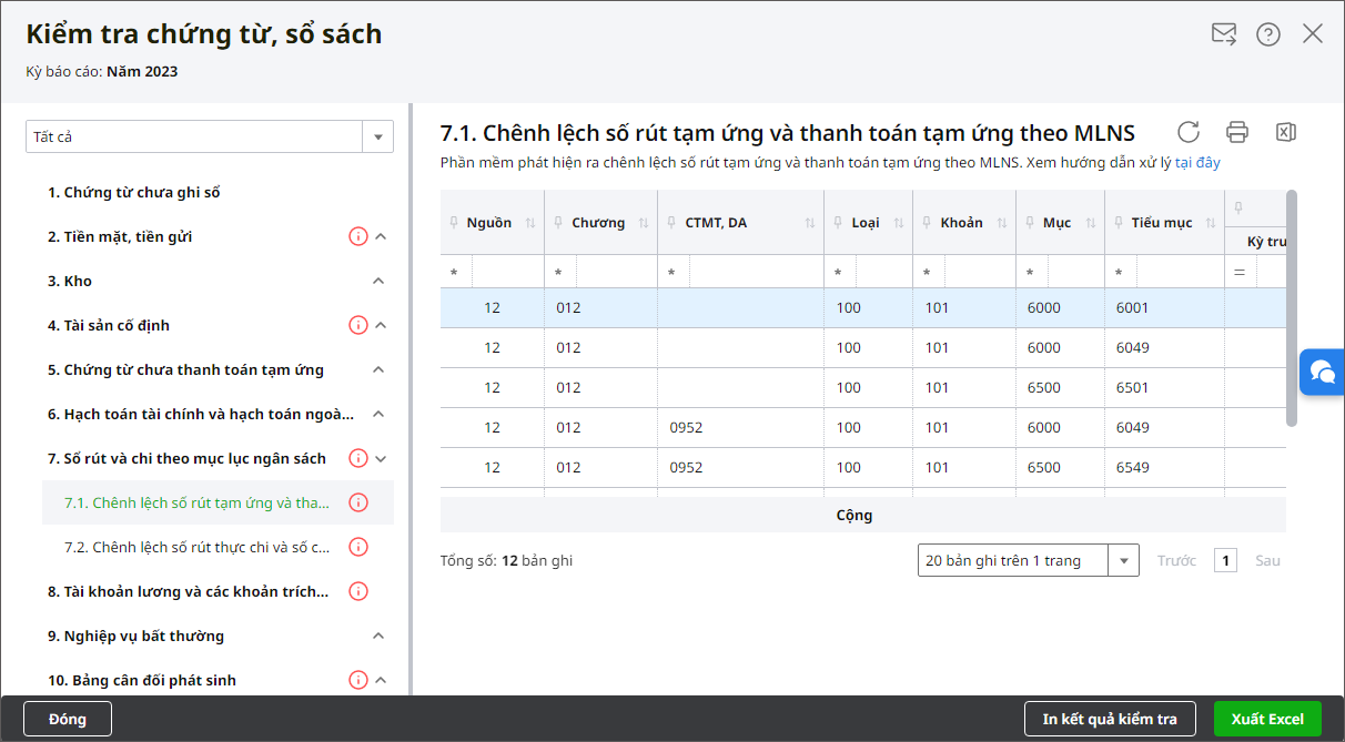 Hướng dẫn kế toán kiểm tra, phát hiện ra các mục lục ngân sách có số kinh phí rút và chi chưa hợp lý.