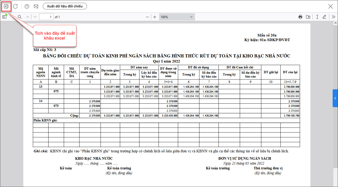 Bước 2: Tích vào biểu tượng excel bên góc trái để xuất khẩu.