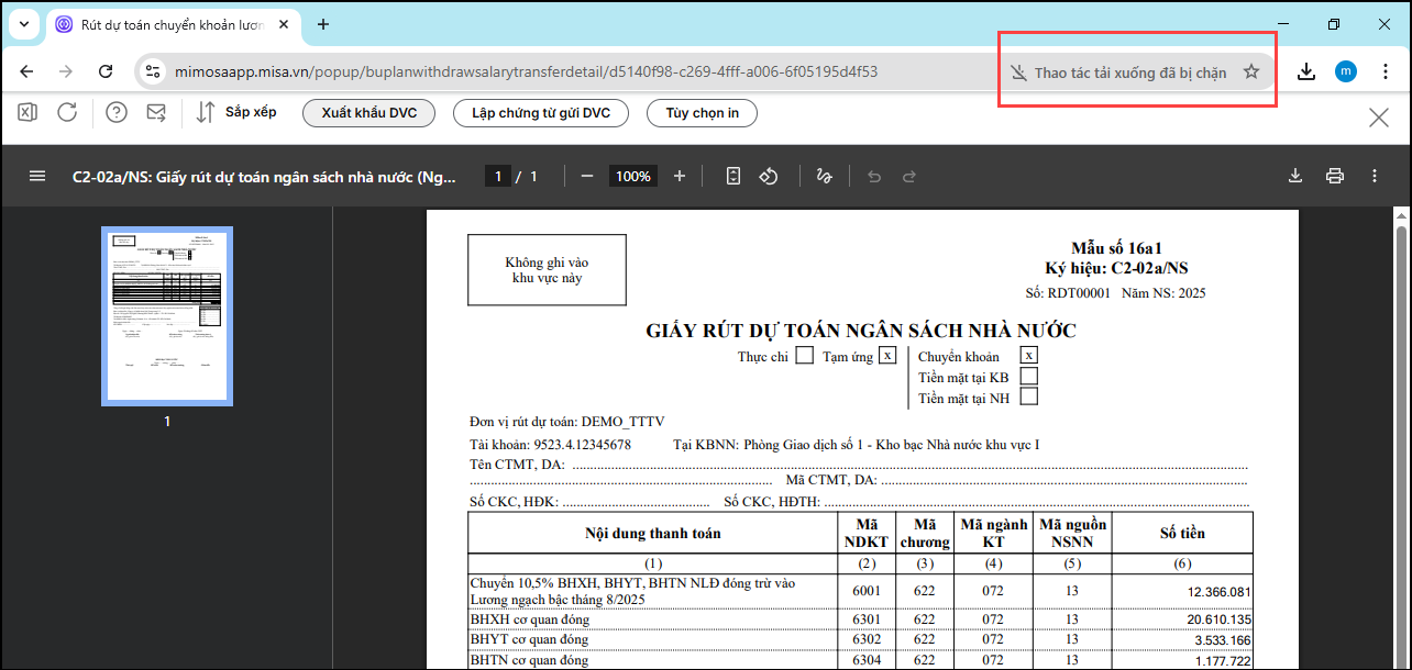 Bài viết này hướng dẫn cách xử lý khi đã nhấn xuất khẩu DVC trên màn hình chứng từ kho bạc  nhưng không thấy file được tải xuống do trình duyệt đang chặn cửa sổ bật lên (popup), hoặc xem danh sách tải xuống trình duyệt web báo “Cần có quyền để tài xuống”.