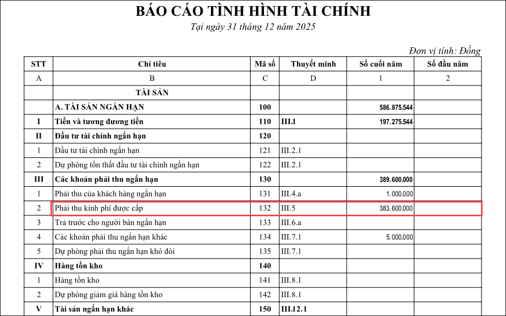 Bài viết này hướng dẫn anh/chị cách kiểm tra nguyên nhân và giải pháp xử lý khi xem báo cáo B01/BCTC: Báo cáo tình hình tài chính thấy chỉ tiêu Phải thu kinh phí được cấp (mã số 132) lên số liệu chưa đúng.