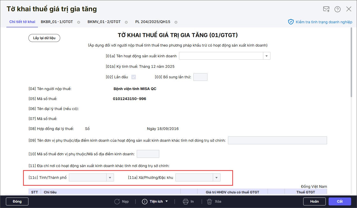 • Thay thế cụm từ “Phường/xã” tại chỉ tiêu 11a thành “Xã/phường/đặc khu”.