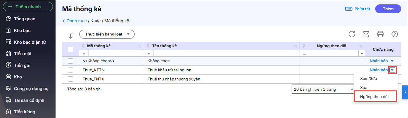 Bước 2: Để thêm mới mã thống kê, nhấn Thêm.