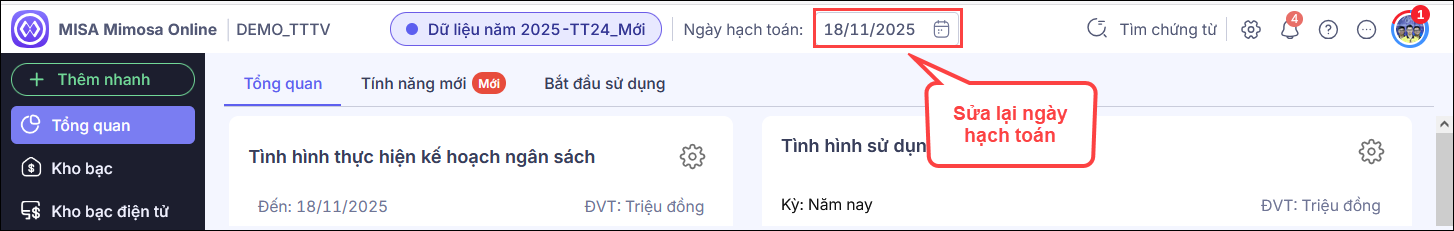 - Anh/chị sửa ngày hạch toán về ngày hiện tại hoặc ngày mong muốn