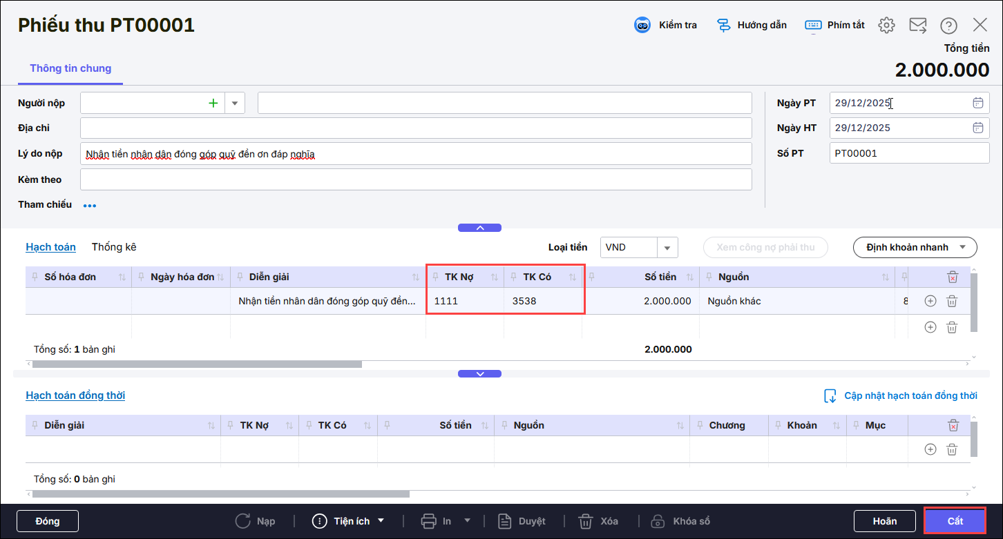 3.1 Nhận tiền đóng góp, ủng hộ
