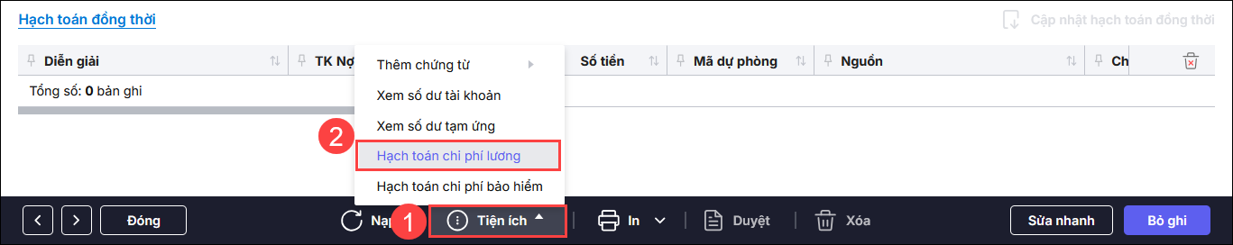 - Tích chuột vào số chứng từ cần bổ sung Hạch toán chi phí lương