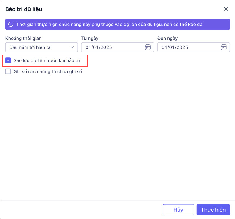 >>> Xem hướng dẫn Bảo trì dữ liệu tại đây