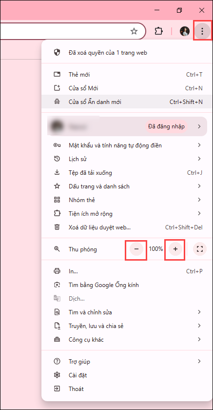 - Bạn tích vào dấu ba chấm ở góc phải của trình duyệt.
