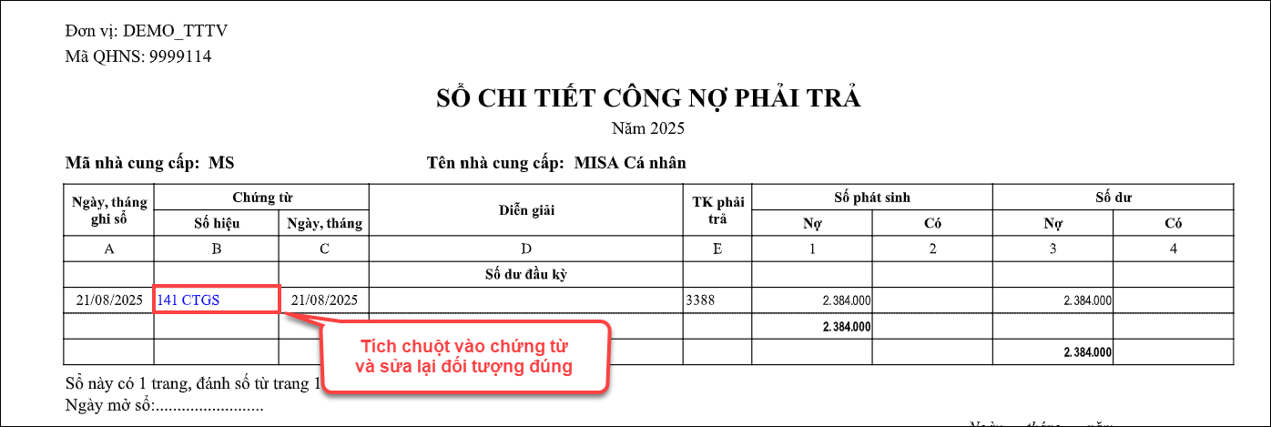 Anh/chị kiểm tra số dư cuối kỳ của từng đối tượng xem đối tượng nào sai