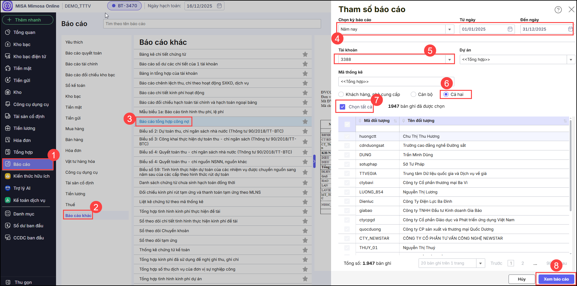Sau khi chính sửa chứng từ xong . Anh/chị thực hiện in lại Báo cáo để kiểm tra
