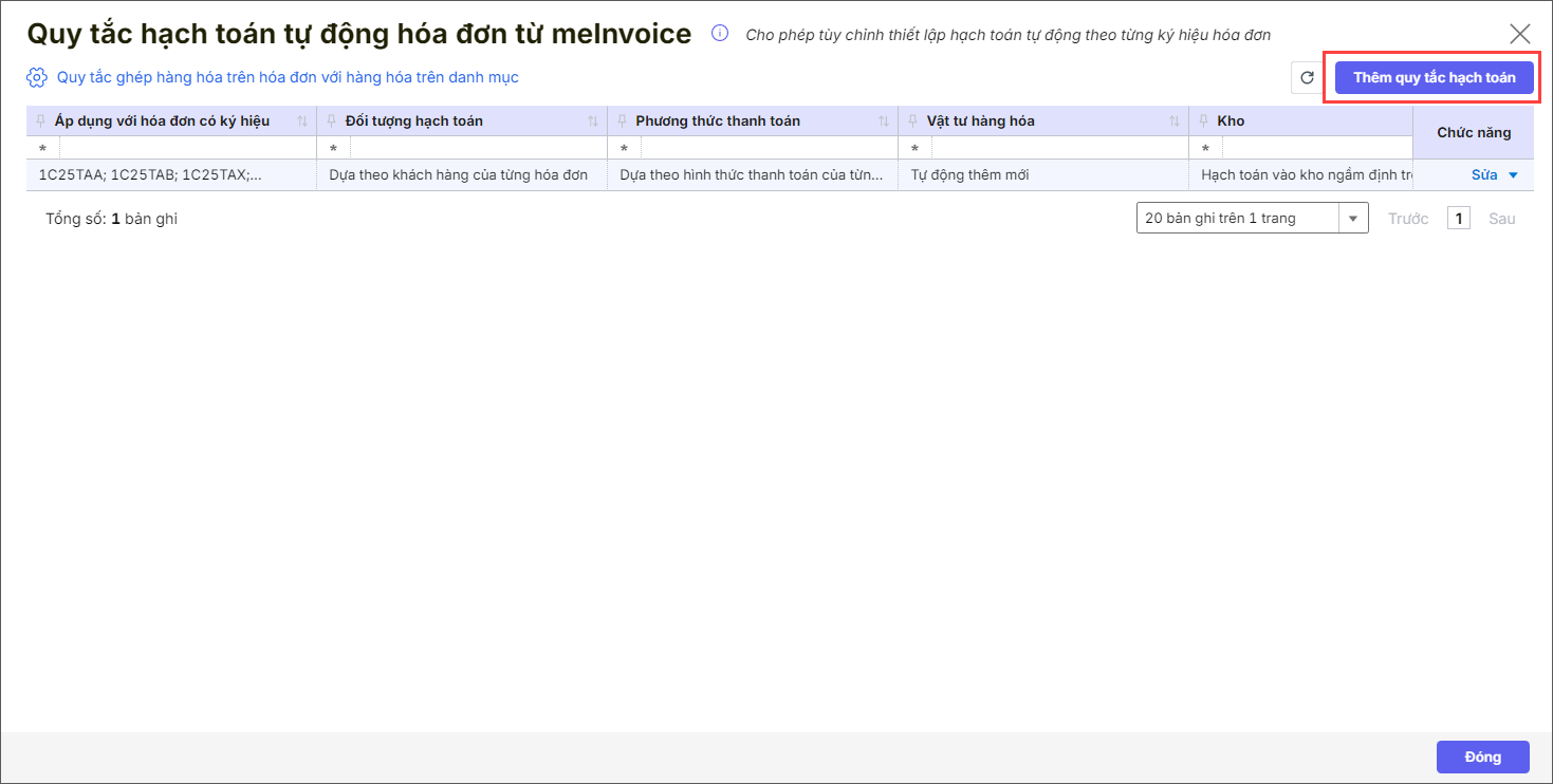 - Nhấn Thêm quy tắc hạch toán.