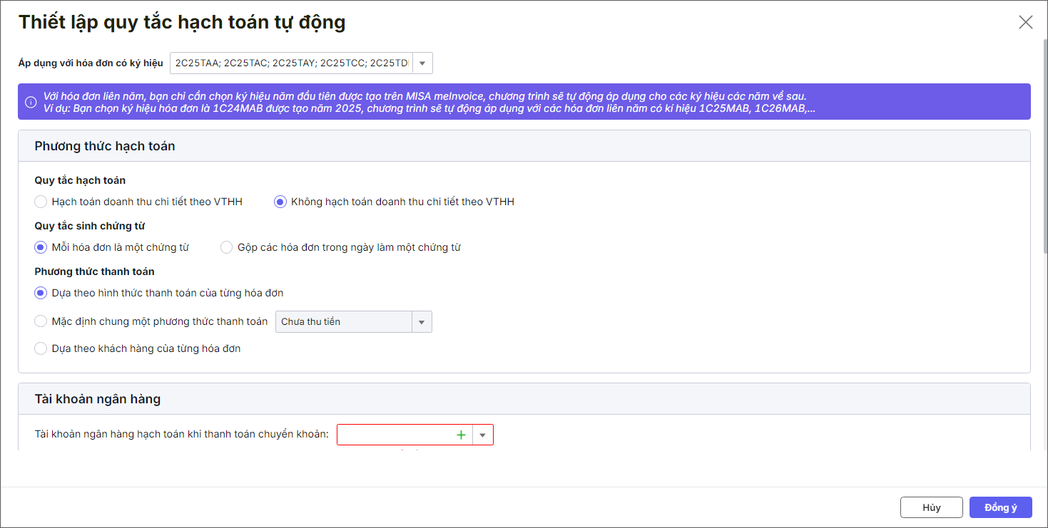 - Nhấn Đồng ý để lưu quy tắc tự động hạch toán hóa đơn.