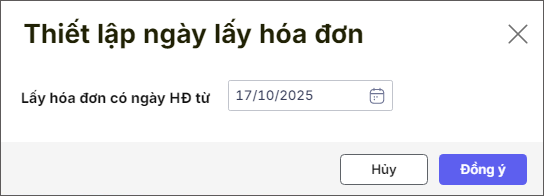 Bước 4: Chọn ngày lấy hóa đơn. Nhấn Đồng ý.