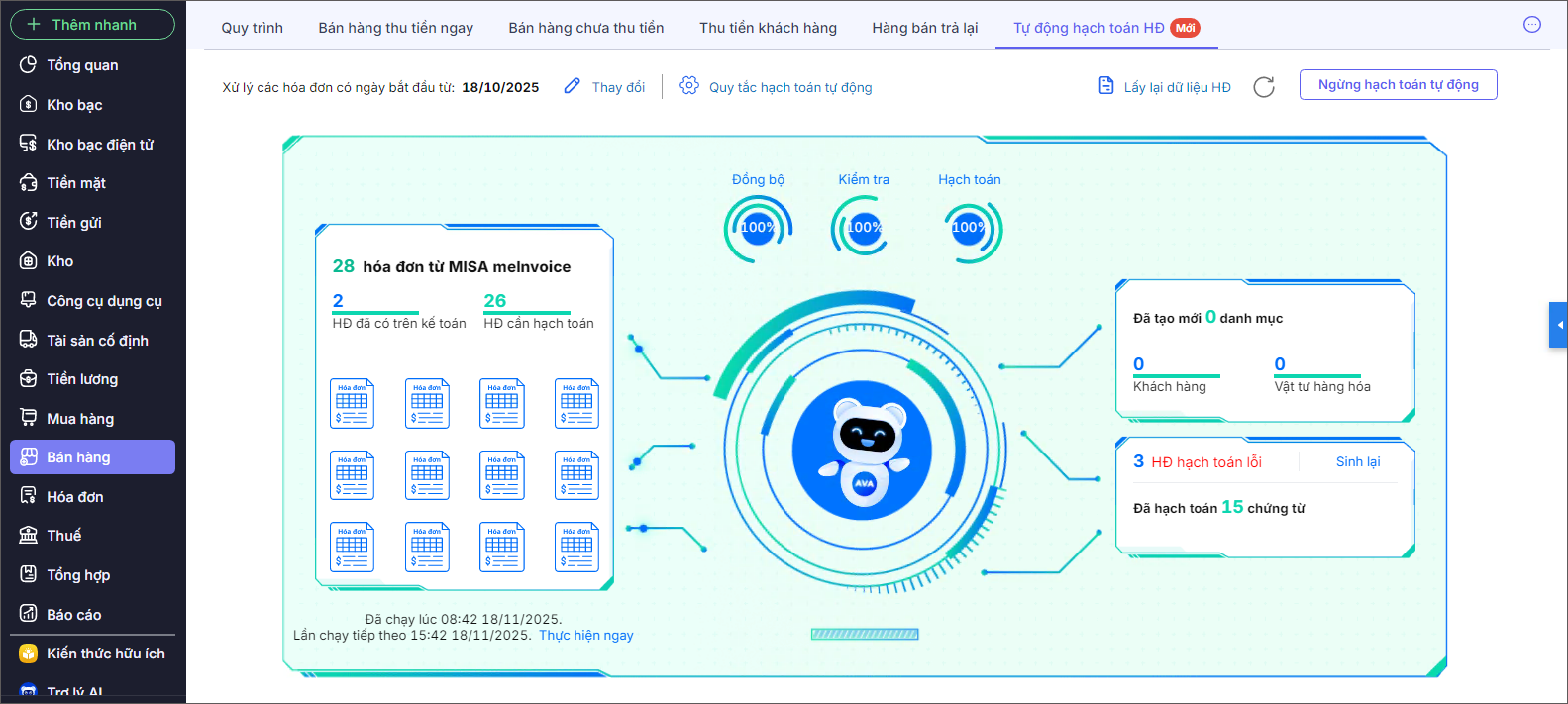 *Lưu ý: Bạn cần kết nối với phần mềm MISA meInvoice để trợ lý AVA có thể thực hiện tự động xử lý hóa đơn.