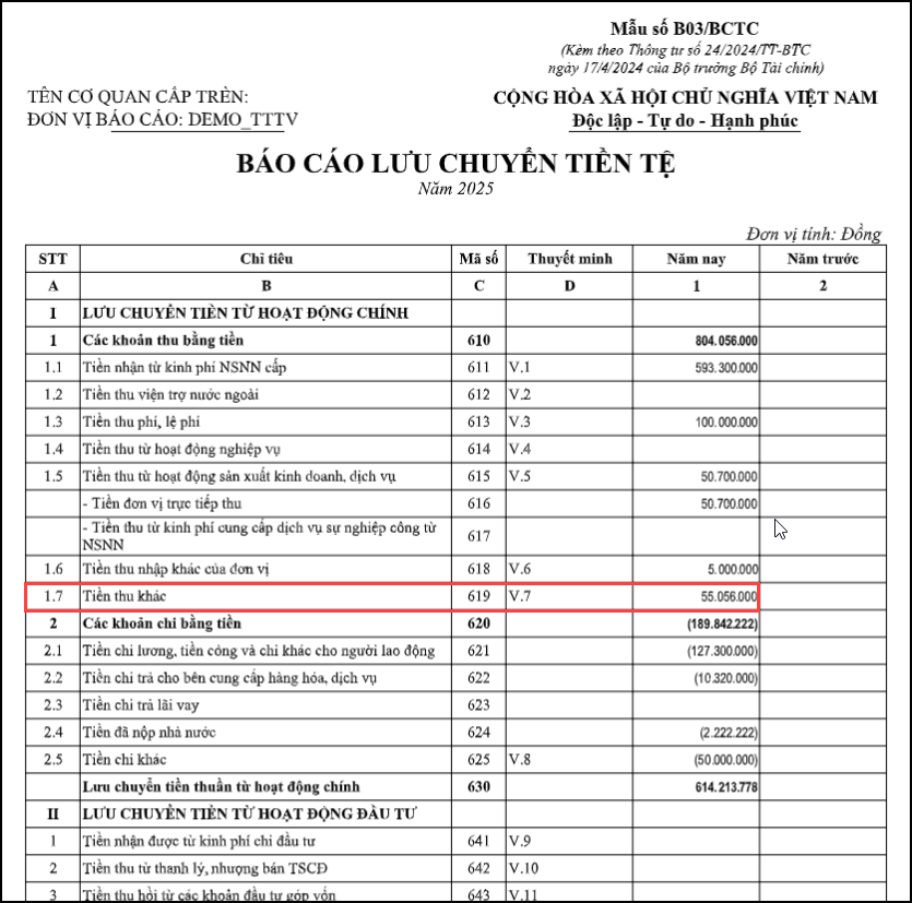 Bài viết này hướng dẫn xác định và đối chiếu số liệu chỉ tiêu Tiền thu khác mã số 619 trên báo cáo B03/BCTC: Lưu chuyển tiền tệ.