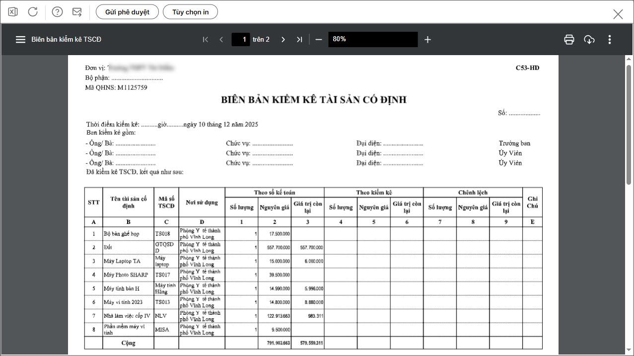 3.1. In biển bản kiểm kê TSCĐ để thực hiện kiểm kê thực tế